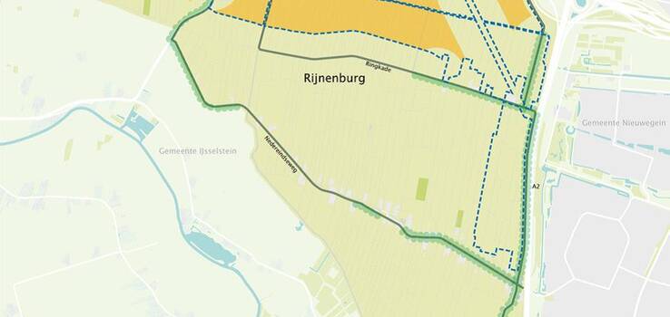 Het gebied waar zonnevelden kunnen komen, ligt in het noorden van Rijnenburg en een strook langs de A2. Het zoekgebied voor de zonnevelden wordt iets groter doordat de ruimtelijke reservering voor roeiwater naar het zuiden is verplaatst. Uit onderzoek blijkt dat het toevoegen van roeiwater financieel niet haalbaar is in het tijdelijke energielandschap. Bij de besluitvorming over de toekomstige inrichting van Rijnenburg wordt een nieuwe afweging gemaakt. Daarom blijft nu wel een reservering voor roeiwater in dit voorstel staan.