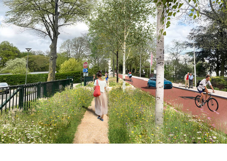 De rijbanen worden versmald om snelheid te remmen en ruimte te creëren voor groen;