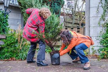 Zet uw kerstboom neer zonder versiering en pot. We verwerken de kerstbomen namelijk tot compost.