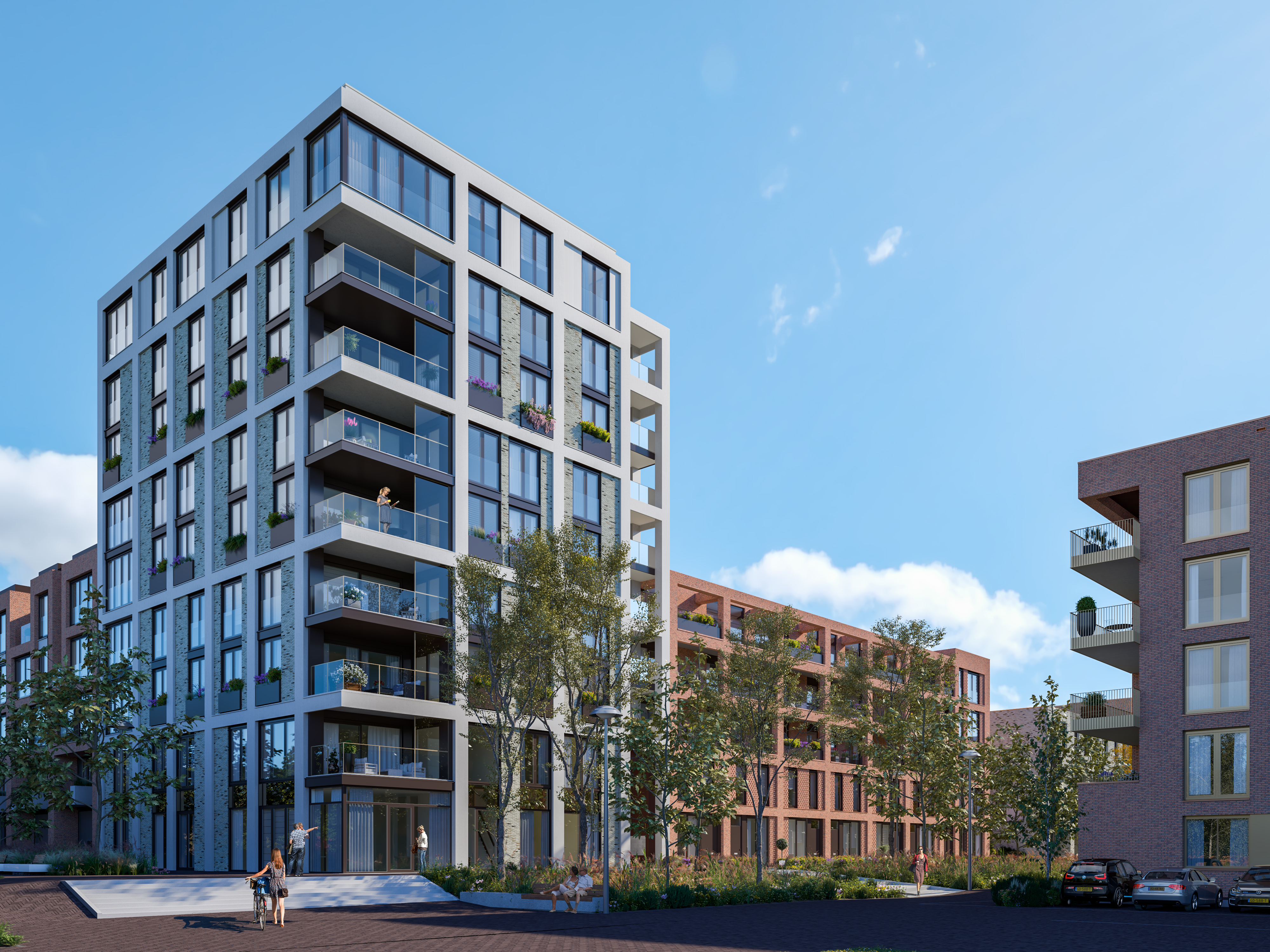 - 477 parkeerplekken onder de gebouwen, met elektrische laadpalen