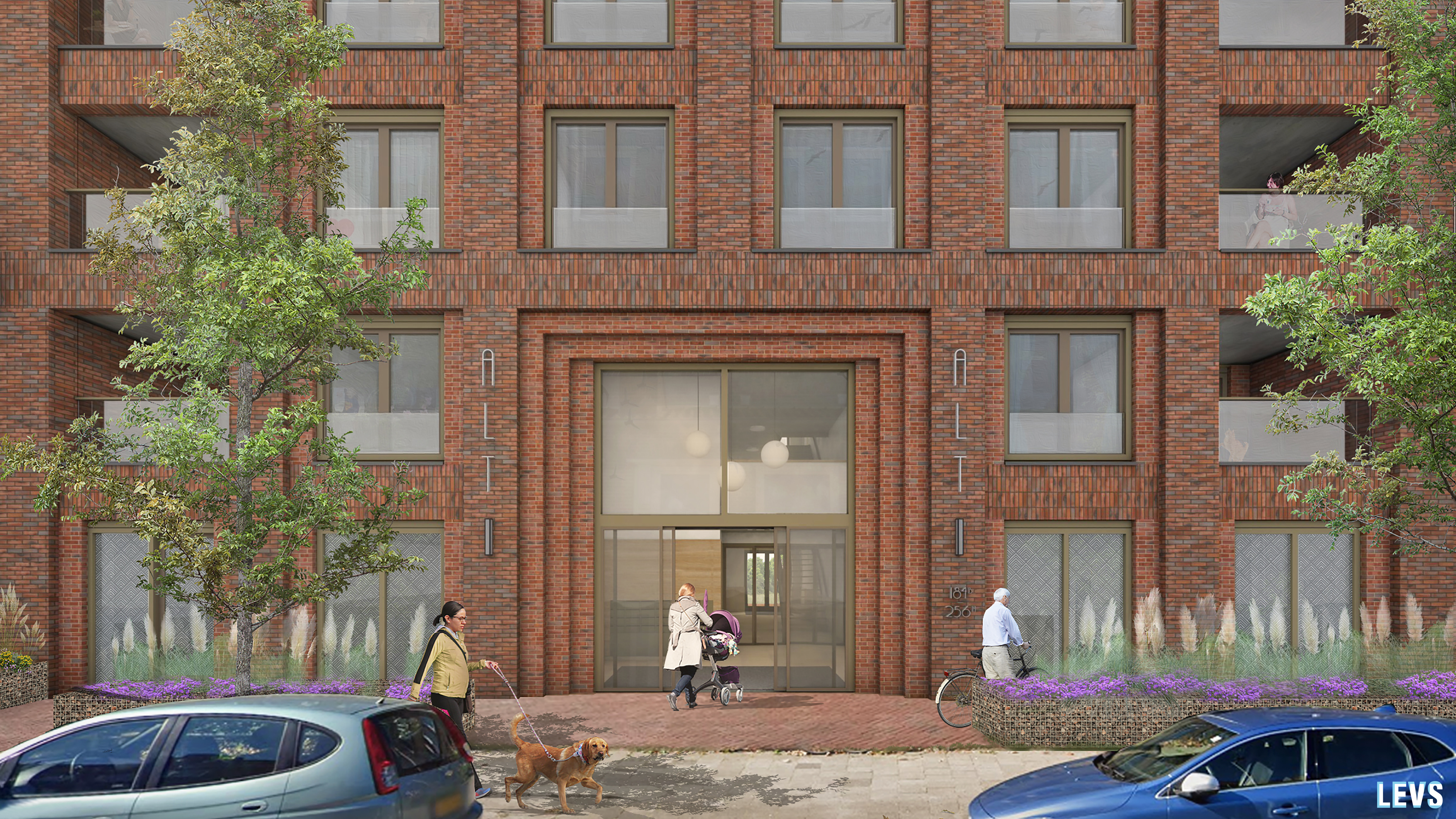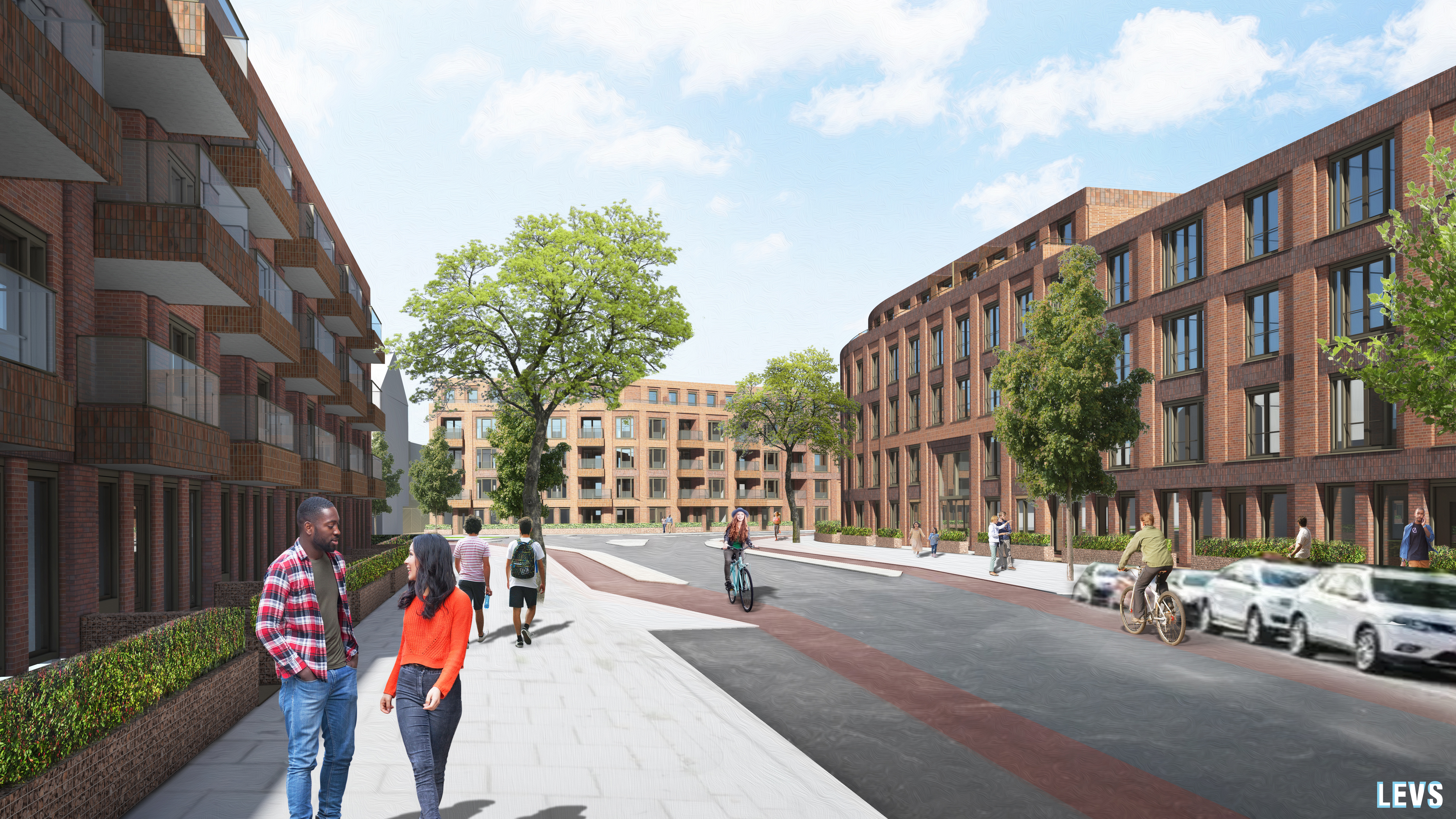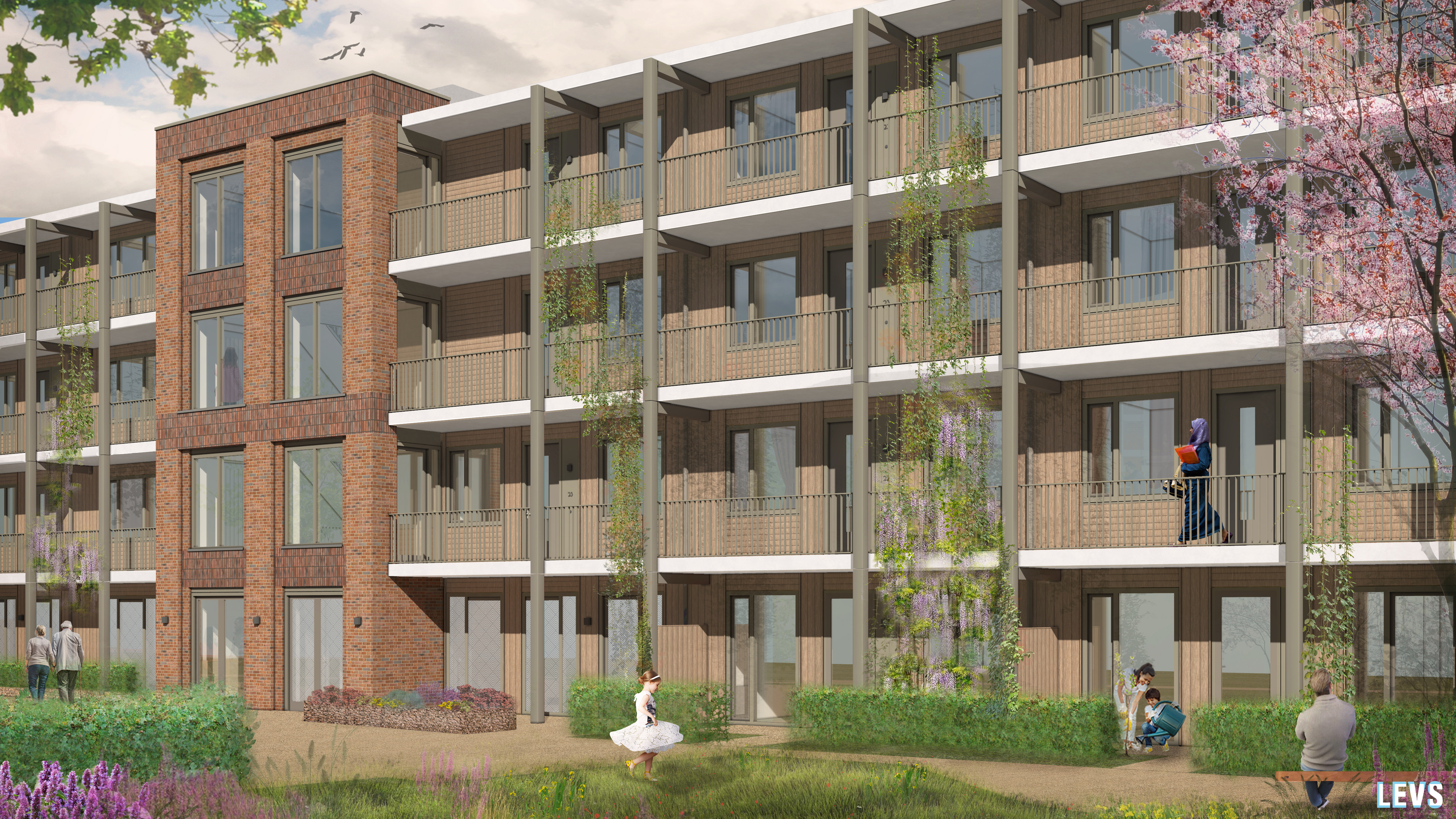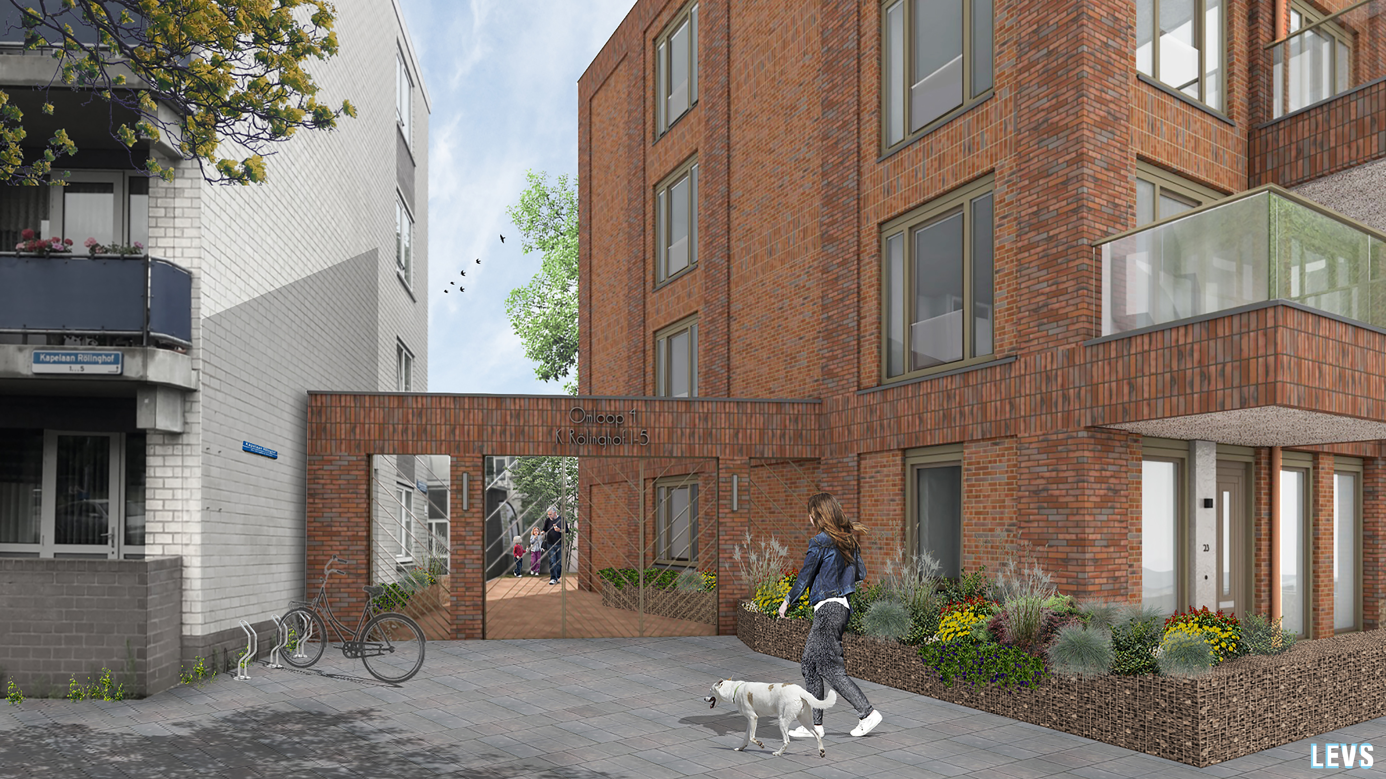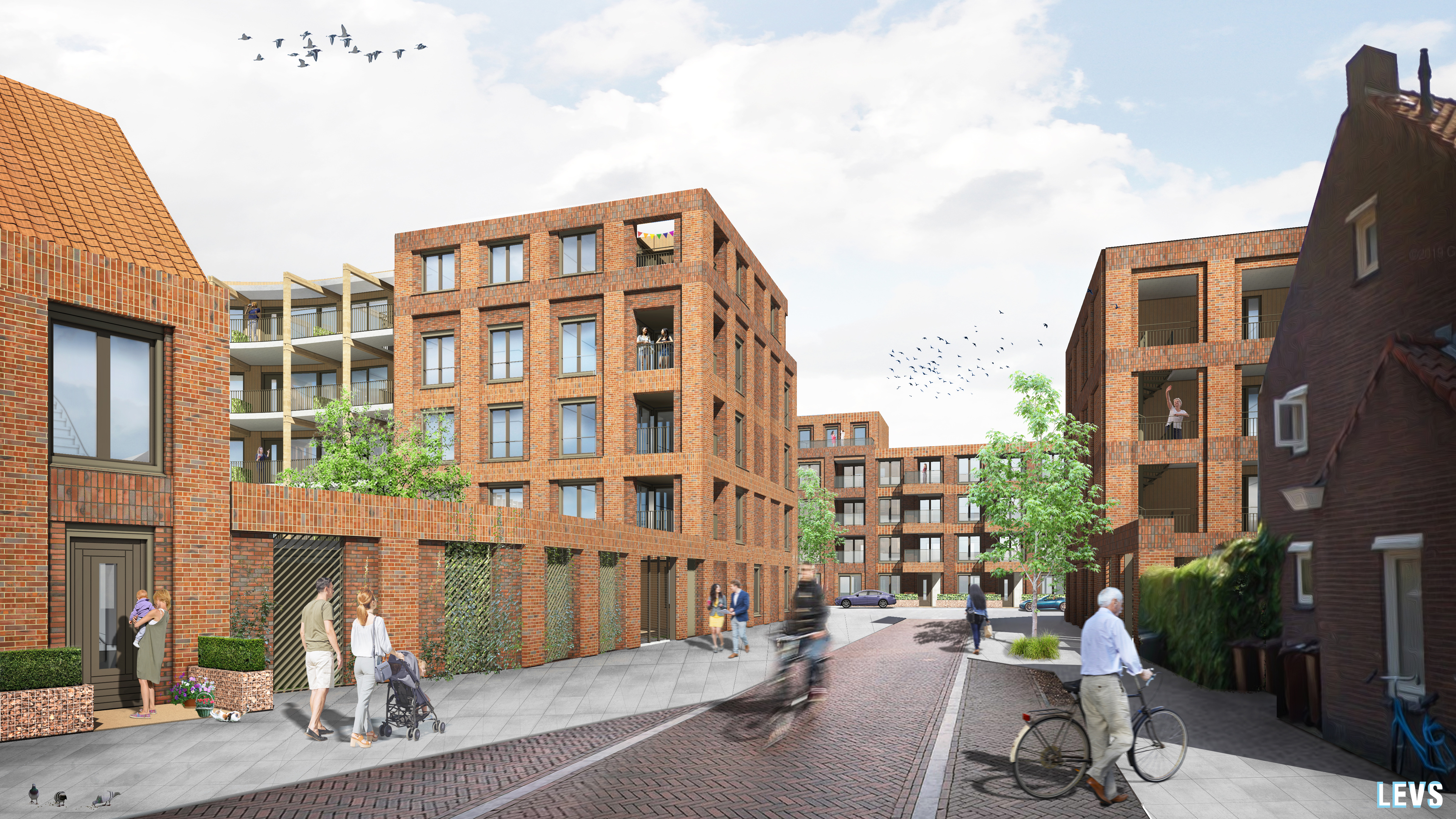 - De nieuwe appartementencomplexen krijgen een gezamenlijke groene binnentuin om contact tussen bewoners aan te moedigen.