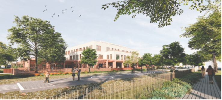 - Het schoolterrein wordt zo groen mogelijk ingericht, met een aansluiting op het Vechtzoompark.